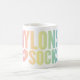 Mein erster Versuch an der Herstellung wenig etwas. Das Regenbogen Nylonsandsocks Logo wickelte durch die Beine ein, die ganz um eine Kaffee-Tasse eingewickelt wurden, um Ihren Morgen ein wenig bunter zu machen.