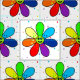 Ein mit Ziegeln gedecktes Muster einer Regenbogen-Blume auf einem bunten dotty Hintergrund.
