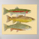 Regenbogen-, Braun- und Bachforelle auf farbigem H Poster