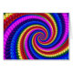 Gruß-Karte, die ein flippiges Hippieartregenbogen-Strudelmuster kennzeichnet. Diese Fraktalkunstspirale/-strudel in Rotem, in Orange, in Gelbem, in Grünem, in Blauem, in Lila und in rosa holen ein Lächeln zu, das jeder, hypnotizing Gesicht mit ihm Muster und helle Farben.