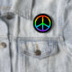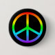 Schwarzes Knopf-Button mit vollem Spektrumregenbogen-Friedenszeichen.
