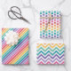 ein farbenfroh rennbogenfarbenes Set aus Streifen, Polka-Dosen und Chervon-Muster für Geburtstage oder Babyduschen