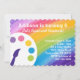 Personifizieren Sie diese hübsche Einladung mit den Sonderkommandos des Kunst-Party Ihr Kindes. Dieses niedliche Ausrüstungsbeschreibungen eine Palette mit Farbe und einem Malerpinsel. Der Hintergrund ist eine Regenbogenmalerei.