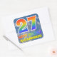 Dieses lustige, auffällige und aufregende Geburtstagsdesign zeichnet sich durch einen blauen Himmel mit Wolkenmuster-Hintergrund, eine große Zahl "27" und "HAPPY BIRTHDAY" aus, beide mit einem farbenfrohen Regenbogenspektrum inspirierten Farbverlauf und einem personalisierten Namen. Glückliche und lustige Aufkleber wie diese können verwendet werden, wenn Geschenke verpackt werden, die jemandem gegeben werden, der seinen 27. Geburtstag feiert. [~Z0000374]
