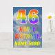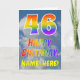 Dieses lustige und farbenfrohe 46. Geburtstagskarten-Design zeigt eine Darstellung eines wolkenlosen blauen Himmels, zusammen mit einer großen Zahl "46" und der Meldung "HAPPY BIRTHDAY", mit einem Regenbogenspektrum, inspiriert Farbverlaufsmuster, vorne. Auf der Vorderseite befindet sich auch ein benutzerdefinierter Empfängername. Im Inneren befindet sich eine benutzerdefinierte Geburtstagsgrüßbotschaft, oder man könnte sie löschen und leer verlassen werden, wenn eine Nachricht von Hand geschrieben werden soll. Eine individuell anpassbare Geburtstagskarte wie diese könnte eine lustige Art sein, Geburtstagswünsche an jemanden zu senden, der seinen sechsundvierzigsten Geburtstag feiert. [~Z0000371]