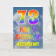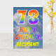 Dieses lustige und farbenfrohe Grußkartendesign aus dem 73. Jubiläum zeigt einen blauen Himmel, zusammen mit einer großen Zahl "73" und der Meldung "HAPPY BIRTHDAY" mit einem inspirierten Farbverlauf in Regenbogenfarben. Auf der Vorderseite befindet sich auch ein benutzerdefinierbarer Empfängername. Im Inneren befindet sich eine bearbeitbare Geburtstags-Grußnachricht, oder man könnte sie löschen und leer verlassen werden, wenn eine Nachricht von Hand geschrieben werden soll. Eine individuell anpassbare Geburtstagskarte wie diese könnte eine lustige Art sein, jemandes dreiundsiebzigsten Geburtstag anzuerkennen. [~Z0000371]