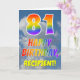 Dieses lustige und farbenfrohe 81. Geburtstagskarten-Design zeigt eine Darstellung eines wolkenlosen blauen Himmels, zusammen mit einer großen Zahl "81" und der Meldung "HAPPY BIRTHDAY", die vorne eine inspirierte Farbgebung der Farbverlaufsmuster . Auf der Vorderseite befindet sich auch der benutzerdefinierte Name des Kartenempfängers. Im Inneren befindet sich eine personalisierte Geburtstagsgrüßbotschaft, oder man könnte sie löschen und leer verlassen werden, wenn eine Nachricht von Hand geschrieben werden soll. Eine personalisierte Geburtstagskarte wie diese könnte eine lustige Art sein, eine Botschaft zum Feiern des einundachtzigsten Geburtstages von jemandem zu senden. [~Z0000371]
