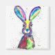Rainbow hare Illustration von Monika Howarth. Original Aquarellmalerei von Hasentieren. Kaninchenkunst, Hasen-Malerei. Kinderzimmer, Babydusche. Regenbogenkunst.