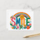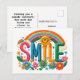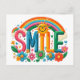 Brighten Sie jemandem den Tag mit dieser schönen Get Well bald Postkarte! Mit einem fröhlichen Frontdesign mit bunten Blume, einem Regenbogen und dem Wort "Lächeln" bringt es Wärme und Positivität. Der Rücken enthält eine herzliche Nachricht und Platz für die Adresse des Empfängers.