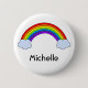 Ein Regenbogen taucht von den Wolken auf diesem Knopf mit einem Namen unten in den gotischen Schriften auf. Personifizieren Sie mit Ihrem eigenen Namen oder anderem Text. Fertigen Sie zur Änderungs-Schriftartart besonders an und färben Sie.