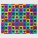Niedliche und funky Silhouettegesichter der schwarzen Katze auf einem mehrfarbigen Regenbogen quadrieren Hintergrund. Dieses Cartoonkatzenmuster ist sehr Hippieart und wird ein großes Geschenk für einen Katzenliebhaber machen!