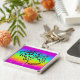 Eine erstklassige Schlüsselkette mit einem Leopard Appaloosa-Pferdekopf auf einem Regenbogenhintergrund.
