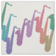 Regenbogen-Saxophone auf weißem Gewebe. Regenbogen-Saxophone, die in ein Zickzackmuster gegen Weiß oder Ihre Wahl der Hintergrundfarbe. tanzen. Groß für das Entwerfen für den Musiker oder den Musikfreund. Die Hintergrundfarbe kann geändert werden, um Ihren Dekor oder themenorientiertes Ereignis der Musik zusammenzubringen.