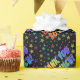 Dieses lustige, optimistische Dankeschön, dass Sie das Papier-Design mit der Nachricht "DANK YOU SO VIEH!" versehen, mit Buchstaben, die ein Regenbogenspektrum wie Muster haben, auf einem dunklen Hintergrund mit einem bunten Sternmuster. Dies kann verwendet werden, um ein Dankeschön-Geschenk an jemanden zu verpacken, der etwas Besonderes getan hat.