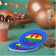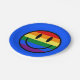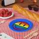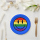 Dieses farbenfrohe Kunstwerk verfügt über einen Regenbogen-Smiley.