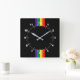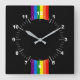 Regenbogen-Streifen auf schwarzer Unterstützung Quadratische Wanduhr