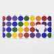 Regenbogen farbige Tupfen werden in den Reihen auf einem weißen Hintergrund vereinbart. Der Ausgleich rudert Formdiagonalen jeder Farbe: Veilchen, Indigo, Blau, Grün, Gelb, Orange und Rot.