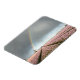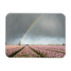Rechteckiger Foto-Magnet mit Regenbogen und dunklen Wolken während eines Frühjahrssturms über eine Landschaft mit einer alten Windmühle und rosa Hyazinthen-Blume in der niederländischen Bulb-Region.