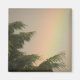 Dieser Magnet zeigt ein Foto eines bunten Regenbogens gegen einen grauen Himmel. Der Regenbogen ist wunderschön hinter einem Baum gerahmt und bietet einen wunderschönen Blick auf die Natur.