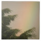 Diese phantastische Kachel zeigt ein Foto eines bunten Regenbogens gegen einen grauen Himmel. Der Regenbogen ist wunderschön hinter einem Baum gerahmt und bietet einen wunderschönen Blick auf die Natur.