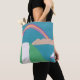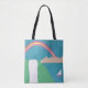 Diese Tasche ist mit einer Darstellung eines Regenbogens über einem Wasserfall mit einem Segelboot auf dem Fluss unten und Berge in der Ferne entworfen. Es ist bereit, Ihre Sachen zu tragen, wohin Sie auch gehen.