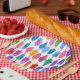 Rainbow Watercolor Ice Cream Ice Pops Muster Geburtstagsparty Paper Teller. Farbenfrohe Silhouetten aus Regenbogenfarbeiskream und Eis-Pop-Popsikel. www.SamAnnDesigns.com