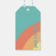 Ziel Regenbogen blau, rot, pfirsichkorallgelb Retro minimale Geschenk-Tag helle Farbe buntes lustiges Design leicht personalisiert sein. Name Persönliche Schriftart Stil, Größe und Farben kann geändert werden. Matching-Elemente verfügbar.