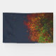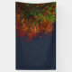 Schauen Sie im Herbst durch die Äste eines Hochbaumes hinauf. Die herabfallenden Blätter Bordeaux, Rot, Gold, Orange, Gelb und Blau funkeln gegen den tiefblauen Himmel.