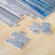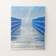 Regenbogen am Ende einer nassen Anlegestelle mit blauen Geländern