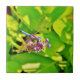 Regenbogenfarbene Libelle auf einer lila rosa Blum Fliese