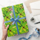 Regenbogenfarbene Libelle auf einer lila rosa Blum Geschenkpapier