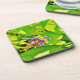 Regenbogenfarbene Libelle auf einer lila rosa Blum Getränkeuntersetzer