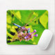 Regenbogenfarbene Libelle auf einer lila rosa Blum Mousepad