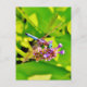 Regenbogenfarbene Libelle auf einer lila rosa Blum Postkarte