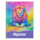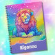 Trendy Regenbogen Wasserfarbe Löwe mit einem ombre Imitat Glitzer Kontur ist einzigartig und mädchenhaft. Passen Sie ihr Spiralheft an, indem Sie es mit ihrem Namen personalisieren und Ihre Tochter in diesem Herbst stilvoll in die Schule schicken!