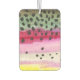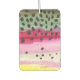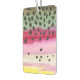 Design zeigt die schönen Farben und Muster der Regenbogenforelle, oncorhynchus mykiss. Wenn Sie ein Forellenfliegenflieger sind - Mann oder Frau - werden Sie diesen Gegenstand, der in einem Auto oder LKW und viele andere Orte aufgehängt werden kann, Liebe geben. Einzigartiges Geschenk für Ichthyologen. Die Kunst stammt aus einem original Aquarellbild von Mr. Trout Whiskers. Dieser Artikel ist auch verfügbar in Brown Foreut, Salmo trutta und Brook Trout, salvelinus fontinalis.