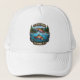 Regenbogenforelle Ein lebendiger Fisch springt vom Truckerkappe
