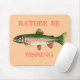 " EHER FISCHT" MAUSUNTERLAGE MIT EINER REGENBOGENFORELLE. FARBIGER BLEISTIFT, DER DURCH LARRY SIMONS ZEICHNET.