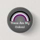 Rundschaltfläche mit asexuellen Regenbogenstreifen aus schwarz, grau, weiß und lila; Ass-Stolz-Flag-Design auf grauem Hintergrund, "This Are My Colors" Template-Text, von Pinkbrickroad