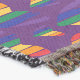 Dieses Kunstwerk besticht durch farbenfrohe Regenbogenherzen auf einem dunklen lila Hintergrund.