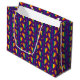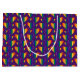 Dieses Kunstwerk besticht durch farbenfrohe Regenbogenherzen auf einem dunklen lila Hintergrund.