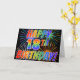 Die Vorderseite dieses aufregenden, auffälligen und lebhaften Grußkartendesigns ist mit einem farbenfrohen, feierlichen Feuerwerk inspiriert, zusammen mit der Meldung "HAPPY 18TH BIRTHDAY!" mit einem farbenfrohen Regenbogen-inspirierten Farbverlauf auf schwarzem Hintergrund. Im Inneren befindet sich eine anpassbare Grußmeldung, oder man kann vielleicht gelöscht und links werden, wenn man eine Nachricht von Hand schreiben möchte. Eine Grußkarte wie diese könnte Spaß machen, jemanden zu schicken, der seinen 18. Geburtstag feiert. [~Z0000355]