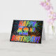 Die Vorderseite dieses lustigen, lebendigen und aufregenden Grußkartendesigns zeigt ein farbenfrohes, gefeiertes Feuerwerk mit inspiriertem Muster, zusammen mit der Meldung "HAPPY 42ND BIRTHDAY!" mit einem farbenfrohen Regenbogen-inspirierten Farbverlaufsmuster auf schwarzem Hintergrund. Im Inneren befindet sich eine individuelle Begrüßungsnachricht, oder man könnte sie löschen und leer verlassen werden, wenn eine Nachricht von Hand geschrieben werden soll. Eine solche Grußkarte könnte eine glückliche, lustige Art sein, jemandem, der seinen 42. Geburtstag feiert, eine Geburtstagsgrüße zu schicken. [~Z0000355]