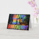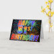 Die Vorderseite dieses lustigen, auffälligen und aufregenden Grußkartendesigns zeigt ein farbenfrohes, gefeiertes Feuerwerk mit inspiriertem Muster, zusammen mit der Meldung "HAPPY 51ST BIRTHDAY!" mit einem farbenfrohen Regenbogenmuster auf schwarzem Hintergrund. Im Inneren befindet sich eine individuelle Begrüßungsnachricht, oder man kann sie löschen und leer verlassen werden, wenn man eine Nachricht von Hand schreiben möchte. Eine solche Grußkarte könnte ein lustiger, glücklicher Weg sein, jemandes 50. Geburtstag zu feiern. [~Z0000355]