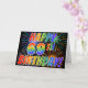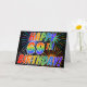Die Vorderseite dieses auffälligen, lustigen und aufregenden Grußkartendesigns ist mit einem farbenfrohen, feierlichen Feuerwerk inspiriert, zusammen mit der Meldung "HAPPY 69TH BIRTHDAY!" mit einem farbenfrohen Regenbogenmuster auf schwarzem Hintergrund. Im Inneren befindet sich eine individuelle Begrüßungsnachricht, oder man könnte sie löschen und leer verlassen werden, wenn eine Nachricht von Hand geschrieben werden soll. Eine solche Grußkarte könnte eine lustige, glückliche Art sein, jemandem, der seinen neunundsechzigsten Geburtstag feiert, eine Grußbotschaft zu senden. [~Z0000355]