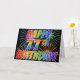 Die Vorderseite dieses lebendigen, spannenden und lustigen Grußkartendesigns zeigt ein farbenfrohes, gefeiertes Feuerwerk mit inspiriertem Muster, zusammen mit der Meldung "HAPPY 77 TH BIRTHDAY!" mit einem farbenfrohen Regenbogenmuster auf schwarzem Hintergrund. Im Inneren befindet sich eine anpassbare Grußmeldung, oder man kann vielleicht gelöscht und links werden, wenn man eine Nachricht von Hand schreiben möchte. Eine solche Grußkarte könnte eine glückliche, lustige Art sein, jemandes 77. Geburtstag zu würdigen. [~Z0000355]
