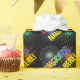 Diese aufregende Gratulationen verpacken Papier-Design zeigt die Nachricht "GLÜCKWUNSCH" mit den Buchstaben mit einem Regenbogenspektrum inspiriert Farbverlaufsmuster, zusammen mit einem anpassbaren Namen, und ein buntes, brennendes Feuerwerk inspiriert Muster auf einem dunklen Hintergrund. Papier wie dieses zu umhüllen könnte eine lustige Art sein, ein Glückwunschgeschenk für jemanden zu machen, der etwas Wichtiges vollbracht hat.