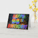 Die Vorderseite dieses aufregenden, lustigen und auffälligen Grußkartendesigns zeigt ein farbenfrohes, von feierlichen Feuerwerken inspiriertes Muster, zusammen mit der Meldung "HAPPY 98. BIRTHDAY!" mit einem farbenfrohen Regenbogen-inspirierten Farbverlauf auf schwarzem Hintergrund. Im Inneren befindet sich eine benutzerdefinierte Begrüßungsnachricht, oder Sie können vielleicht gelöscht und leer verlassen werden, wenn eine Nachricht von Hand geschrieben werden soll. Eine Grußkarte wie diese könnte eine lustige, glückliche Art sein, jemandes 98. Geburtstag zu feiern. [~Z0000355]