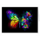 Regenbogen, leuchtend, künstlerisch bemalt Monarchen Schmetterling mit einem Bouquet aus glänzenden, hellen, leuchtenden Rose auf schwarzem Hintergrund. Regenbogenschmetterling.