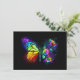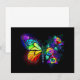 Regenbogen, leuchtend, künstlerisch bemalt Monarchen Schmetterling mit einem Bouquet aus glänzenden, hellen, leuchtenden Rose auf schwarzem Hintergrund. Regenbogenschmetterling.